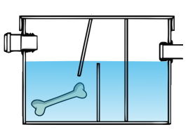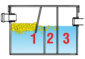Мусор и твердые частички оседают на дно в первой камере, поэтому сток не засоряется остатками пищи.